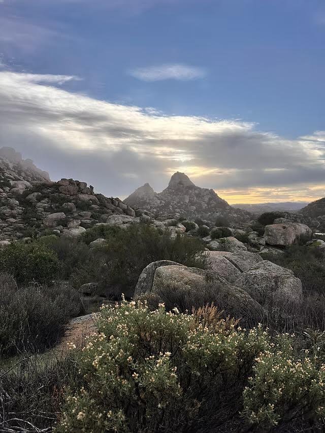 Our retreat home is in a unique transitional ecosystem between mountain and desert along the Tecate Divide. This chaparral biome strewn with magical granite stone people is habitat to a diversity of wild winged, slithering, scaled, hoofed, hopping, furred and feathered kin. This is the indigenous homeland of the Kumeyaay/Kumiai/Ipai–Tipai and Cocopah/Xawiƚƚ Kwñchawaay, and stewarded by the Liberty Arising community. Head to the Liberty Arising website for more information and photos Liberty Arising website.